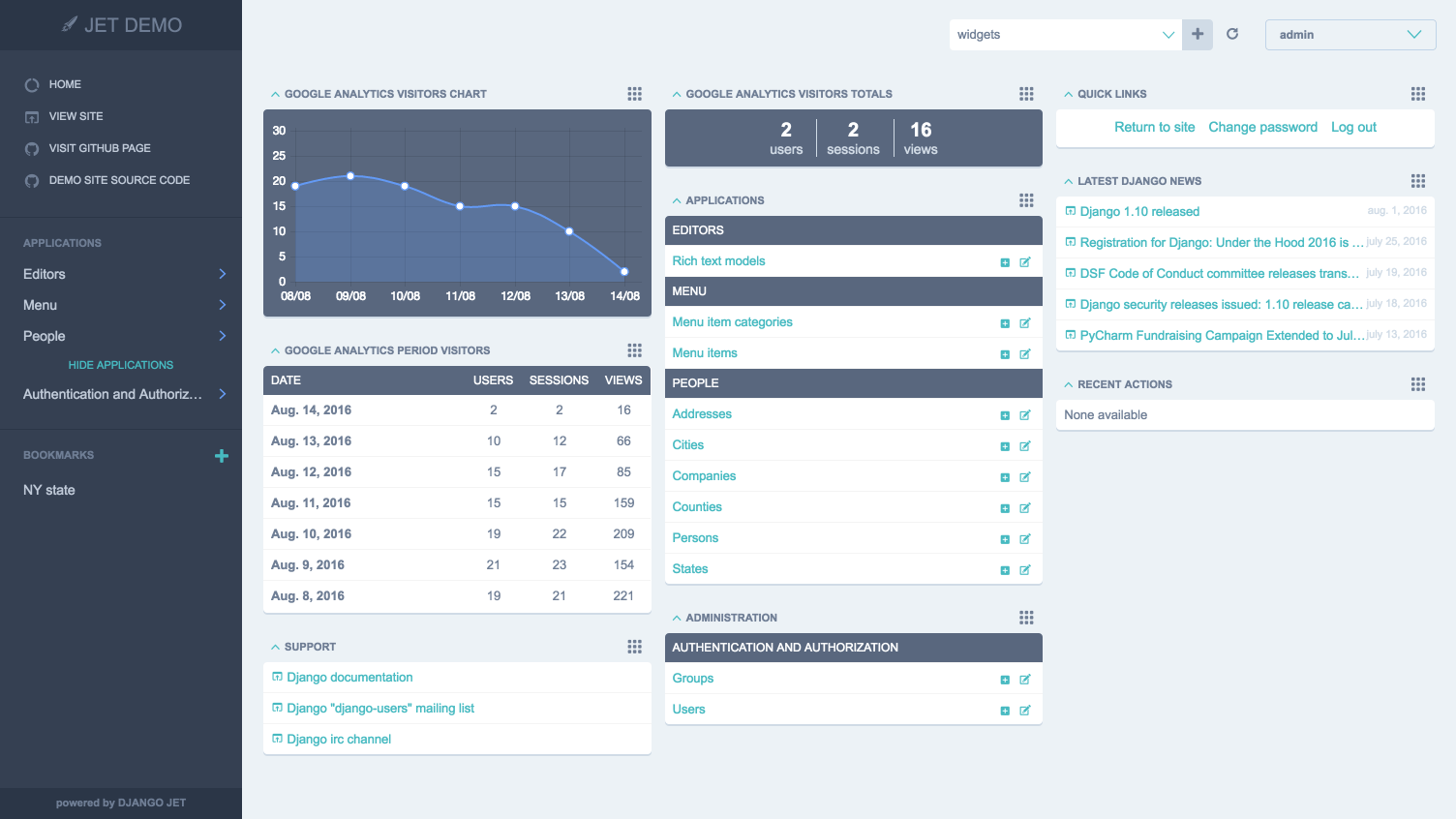 But that's not the end. I'm happy to announce that it's been rebooted with latest jQuery (v3.6.1) and jQueryUI(v1.13.2) along with support for Django 4. Feel free to install in your project, or fork it from here; Django JET 3 Calm