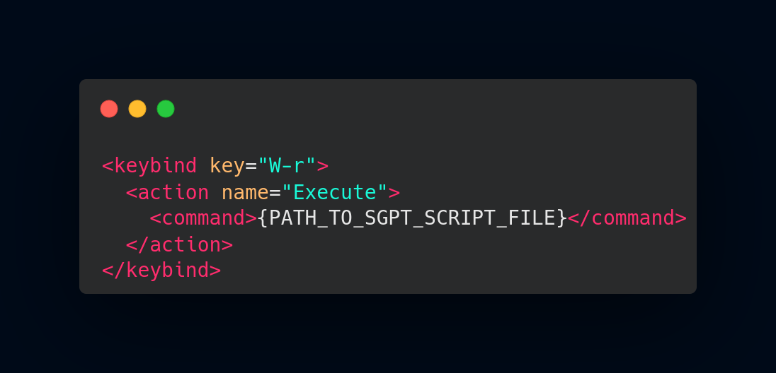 Replace {PATH_TO_SGPT_SCRIPT_FILE} with actual path in your system and add it to ~/.config/openbox/rc.xml. Reload the openbox configuration to changes to take effect.